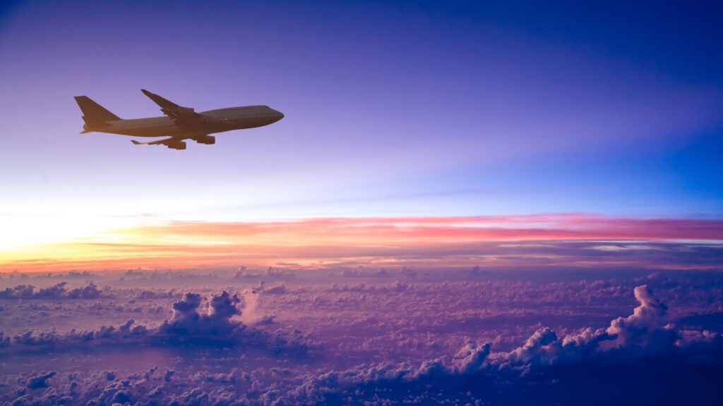 Airplane in the sky at sunrise by 06photo from Getty Images Pro via Canva.com