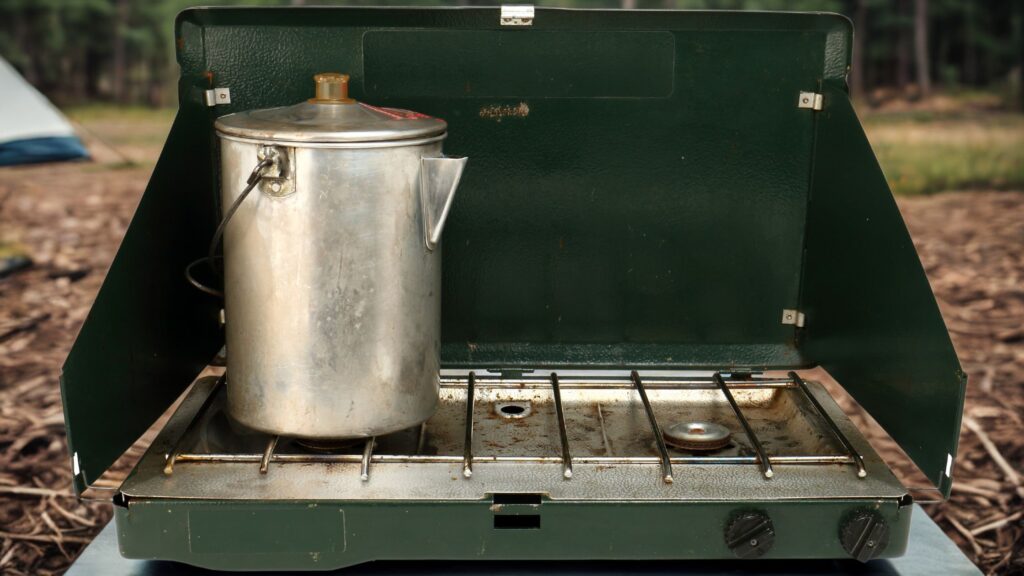 Worn Camping Stove and Coffee Pot by rasilja from Getty Images via Canva.com