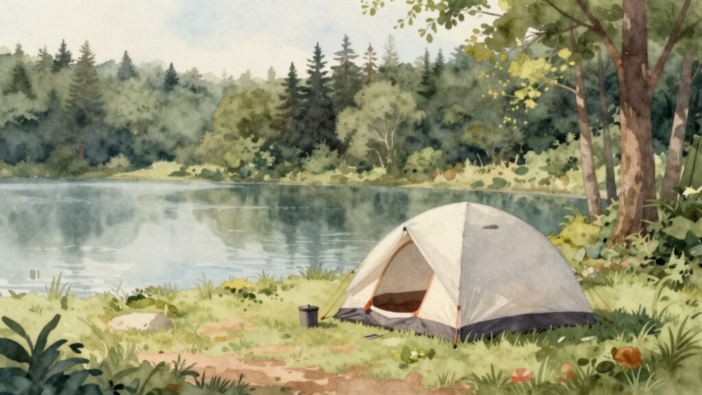 Tent Camping Watercolor by Gal Reinventing (Generated with AI at Canva.com)